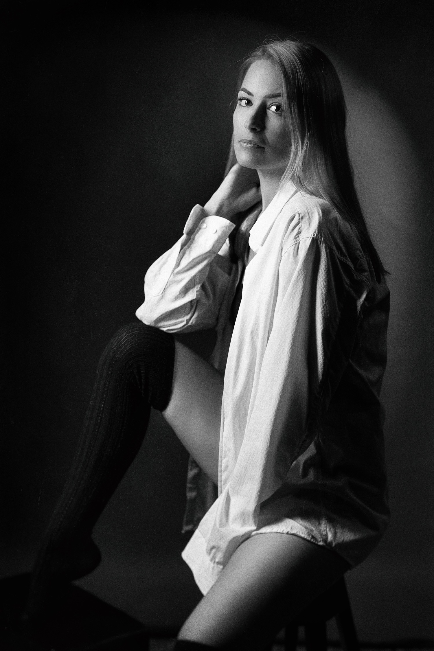 When shooting on a gray background, the nice thing is it is easily detachable in Photoshop to subtly adjust. Here I went for quite a bit of subtle post-processing : ProRetouch from Totally Rad (not affiliated but I love their subtle actions), then in the second pass a Sean Archer action. The latter gives some subtle extra lights and less smooth background (actually requiring you to more or less shoot on a 50% gray backdrop) . With lovely model Simone.