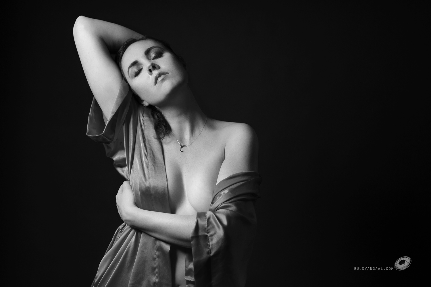 This one from Kelly was originally a lot harsher in contrast. I took 3 different variations in Lightroom, exporting each to Photoshop and making a mix of the three for the jacket, Kelly’s head and her chest. This way the light balance was a lot softer, and I liked that look better in this case, instead of having a really high-contrast look (do note that it still has a lot of contrast).