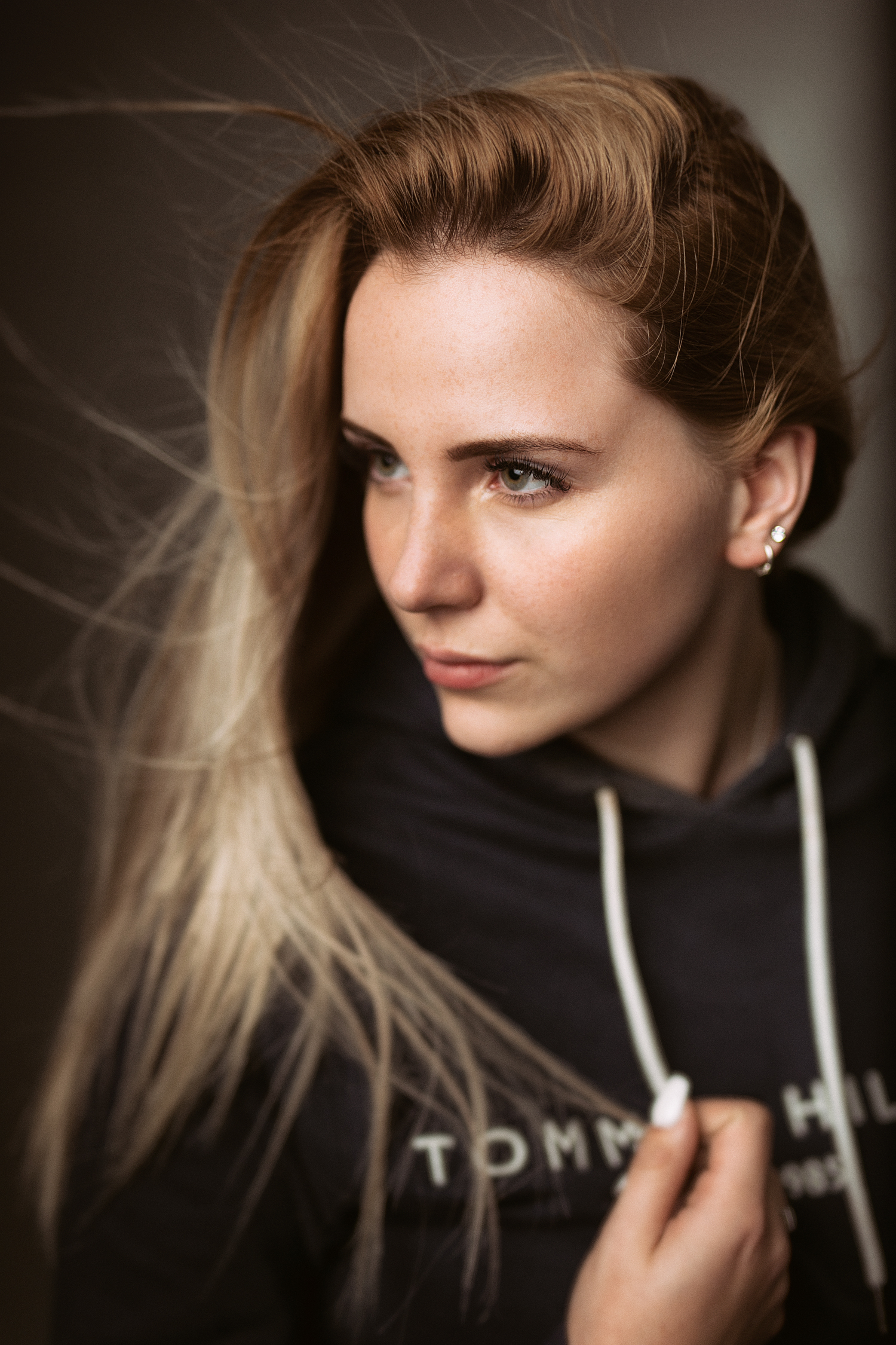 When shooting on a gray background, the nice thing is it is easily detachable in Photoshop to subtly adjust. Here I went for quite a bit of subtle post-processing : ProRetouch from Totally Rad (not affiliated but I love their subtle actions), then in the second pass a Sean Archer action. The latter gives some subtle extra lights and less smooth background (actually requiring you to more or less shoot on a 50% gray backdrop) . With lovely model Simone.